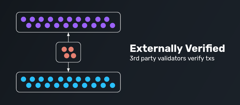 The drawback to external verification is that while it is expedient, it outsources security to third parties (ie. folks other than the validators of the two chains). If these validators' collective security is weaker than the underlying chains they bridge, then they become the weakest link in the system.